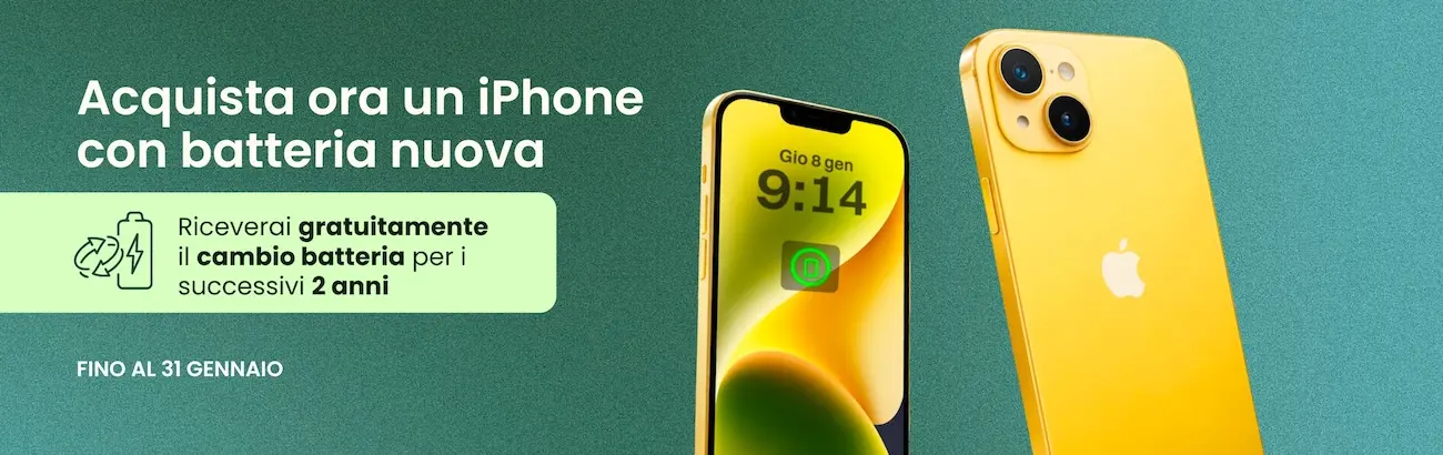 TrenDevice, azienda leader in Italia specializzato nella vendita di dispositivi ricondizionati. Che tu stia cercando un iPhone Ricondizionato, Mac Ricondizionato, iPad Ricondizionato oppure Apple Watch Ricondizionato, AirPods, Samsung Galaxy, Apple TV, Nintendo o Playstation Ricondizionate, su TrenDevice trovi la massima qualità, grazie ai rigorosi test effettuati dai nostri tecnici certificati con un risparmio fino al 40% rispetto al nuovo. Scegliere un Ricondizionato è un modo intelligente e sostenibile di acquistare tecnologia affidabile, garantita e conveniente. Con TrenDevice, puoi contare su un lunga esperienza: siamo nati nel 2013, e da allora operiamo nel settore dell’economia circolare dei prodotti hi-tech con passione e competenza, avendo servito complessivamente oltre 200.000 clienti e ricevuto oltre 12.700 recensioni certificate con un indice di soddisfazione della clientela pari al 92%. Siamo stati inoltre i primi ad introdurre il concetto di iPhone Ricondizionato in Italia e i primi nel nostro settore ad essere quotati in Borsa, nell'ottobre 2020. Commercializziamo i nostri Smartphone Ricondizionati in Italia attraverso il nostro sito e-commerce trendevice.com e una catena di 4 negozi: Milano, Roma, Torino e Avellino. Perché acquistare un iPhone, iPad o Mac Ricondizionato su Trendevice? Su TrenDevice non vendiamo semplici "usati", ma solo dispositivi ricondizionati che superano 47 test hardware e software effettuati dai nostri tecnici certificati. Ogni iPhone, iPad, Mac, AirPods, Apple Watch, Apple TV, Samsung Galaxy, Nintendo e Playstation Ricondizionati sono classificati in base a 4 gradi di Ricondizionamento (A+, A, B, C) che si differenziano solo ed esclusivamente in base alle condizioni estetiche, in quanto ogni dispositivo è venduto perfettamente funzionante, pari al nuovo. Acquistare su TrenDevice è vantaggioso perché: hai la Garanzia 12 mesi inclusa nel prezzi, Spedizione rapida, Pagamenti anche in 3 rate comode rate mensili senza interessi con Klarna, Reso gratuito nei primi 14 giorni. Ricondizionati Apple e non solo: ampia scelta al miglior prezzo Il nostro catalogo comprende una vasta gamma di dispositivi ricondizionati. iPhone ricondizionati: dai modelli più recenti (iPhone 16 Ricondizionato, iPhone 15 Ricondizionato) a quelli più venduti, gli iPhone Best Seller (iPhone 14 Ricondizionato, iPhone 13 Ricondizionato, iPhone 12 Pro Ricondizionato, iPhone 12 Ricondizionato), fino ad arrivare ai più economici ma ancora performanti (iPhone 11 Ricondizionato, iPhone 11 Pro Ricondizionato, iPhone XR Ricondizionato, iPhone SE 2022 Ricondizionato) Mac ricondizionati perfetti per lo studio, il lavoro o il tempo libero. Ampia scelta come ad esempio MacBook Air M1 Ricondizionati, MacBook Air M2 Ricondizionati, MacBook Pro Retina Ricondizionati, iMac Ricondizionati, Mac mini Ricondizionati. iPad ricondizionati ideali per la scuola o l’università, la creatività e l’intrattenimento come ad esempio iPad Air Ricondizionati, iPad Pro Ricondizionati, iPad mini Ricondizionati. Apple Watch ricondizionati perfetti per monitorare salute e fitness con stile: su TrenDevice trovi Apple Watch Ultra Ricondizionati, Apple Watch Serie 10 Ricondizionati, Apple Watch SE Ricondizionati, Apple Watch Serie 8 Ricondizionati e molti altri. AirPods Ricondizionate per ascoltare la migliore musica direttamente dal vostro iPhone e non solo, perfette anche per effettuare le vostre chiamate in tutta libertà: AirPods Pro Ricondizionate, AirPods quarta generazione Ricondizionate, AirPods terza generazione Ricondizionate. Samsung Galaxy Ricondizionati per chi cerca alternative Android di qualità come ad esempio Samsung S25 Ricondizionati, Samsung S24 Ricondizionati, Samsung Z Flip6 e Samsung Z Fold5 Ricondizionati. E infine per gli amanti del gaming, su TrenDevice è possibile acquistare anche PlayStation Ricondizionate e Nintendo Ricondizionate. Ogni settimana trovi offerte aggiornate e promozioni dedicate su tutti i nostri dispositivi, con sconti reali e vantaggi esclusivi. E se desideri qualche sconto e vantaggio in più, iscriviti alla nostra newsletter: ti basta inserire il tuo indirizzo email nel box che trovi qui a fianco. iPhone e Mac Ricondizionati garantiti, come nuovi ma più convenienti Scegliere un iPhone o Mac Ricondizionato significa acquistare con intelligenza. Hai tra le mani un Ricondizionato che offre prestazioni eccellenti, perfettamente funzionante, ma a un prezzo più accessibile grazie alle numerose offerte e promozioni con sconti dedicati a tutti i modelli di iPhone, Mac, iPad Ricondizionati e non solo… Le promozioni sono anche su Apple Watch, AirPods e Samsung Ricondizionati. Vantaggi del ricondizionato Trendevice: - Fino al 40% di risparmio rispetto al nuovo - Ricondizionati perfettamente funzionanti - Pagamento a rate senza interessi con Klarna - Reso gratuito nei primi 14 giorni Offerte e promozioni sui Ricondizionati: tecnologia alla portata di tutti Su Trendevice trovi sconti imperdibili su tutti i ricondizionati, aggiornate ogni settimana. Dalle promozioni stagionali alle offerte lampo, per offrirti sempre la miglior qualità al miglior prezzo. Periodicamente trovi sconti extra su iPhone Ricondizionati, Mac Ricondizionati e su tutto il catalogo, Offerte Back to School, Black Friday, Cyber Monday, Sconti di Natale, Saldi Estivi e Saldi Invernali, ma anche promozioni con la Spedizione Gratis o gli accessori inclusi. TrenDevice è tecnologia sostenibile: il futuro è Ricondizionato Scegliere un iPhone, Mac, iPad o un qualsiasi ricondizionato è una scelta Green intelligente per il bene del pianeta. Ogni dispositivo recuperato e rimesso a nuovo significa: meno rifiuti elettronici, minore impatto ambientale, riduzione delle emissioni di CO₂ Con Trendevice puoi unire risparmio, qualità e sostenibilità in un unico acquisto consapevole. Secondo una stima basata su dati forniti dai produttori, uno smartphone ricondizionato è in grado di evitare l’immissione ne